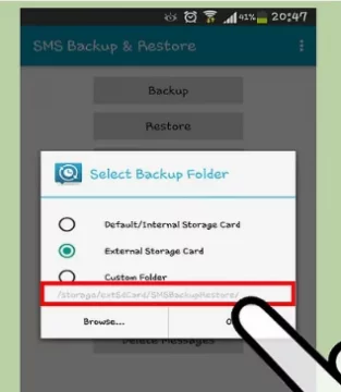 • بعد الإنتهاء من عملية النسخ سيطلب منك إختيار مكان حفظ الرسائل المحفوظة .