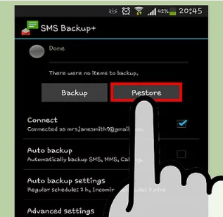 إستعادة الرسائل بإستخدام تطبيق + SMS Backup :