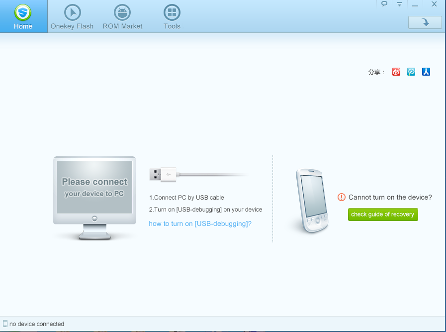 - بعد التثبيت قم بتوصيل هاتفك بالحاسب ثم قم بالضغط علي الزر الاخضر بجانب الهاتف كما هو موضح بالصوره.
