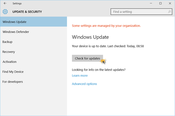 - بعد ذلك قم بالنقر على فحص التحديثات Check for Updates.