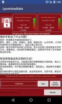 يقوم هذا الفيروس بالأختفاء في شكل أرشادات أو أضافات للألعاب معينة مثل لعبة King Of Glory , و هي أشهر الألعاب التي تقوم بنقل الفيروس و غيرها من الألعاب و التطبيقات الصينية حيث أن الصين هي مصدر الفيروس كما قلنا سواء علي متجر جوجل أو خارجة , و يطلب الفيروس مبلغ مالي يعادل 7 دولار أمريكي لكي يقوم بفك تشفير بياناتك علي الهاتف .