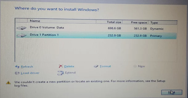 حل مشكلة We couldn’t create a new partition or locate an existing one – ظهرت لكثير من مستخديم نظام الويندوز مشكلة وهي عند تثبيت نظام ويندوز علي جهاز الكمبيوتر الخاص بك و هي مشكلة We couldn’t create a new partition or locate an existing one .