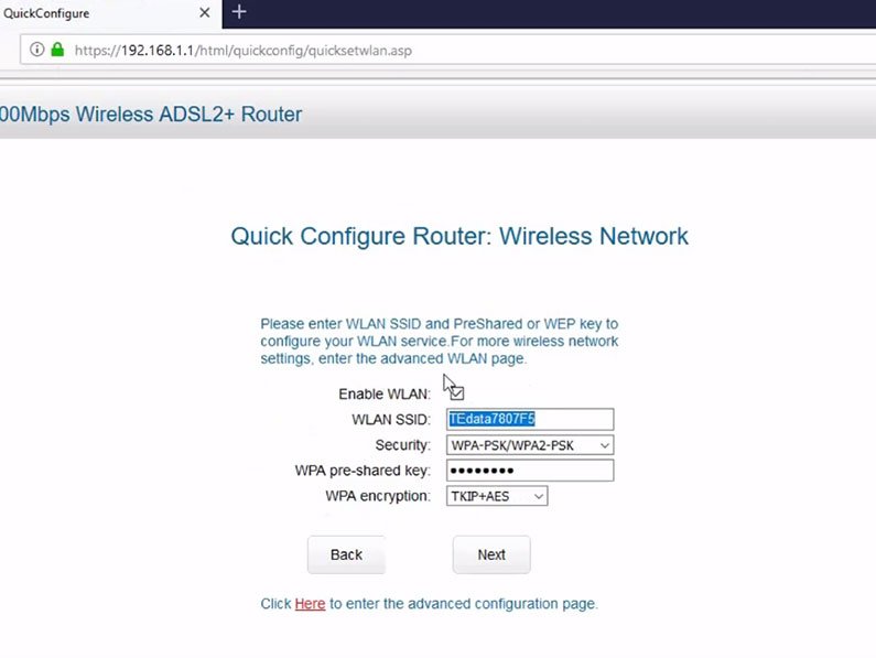 ضبط اعدادات راوتر تي اي داتا WE الجديد