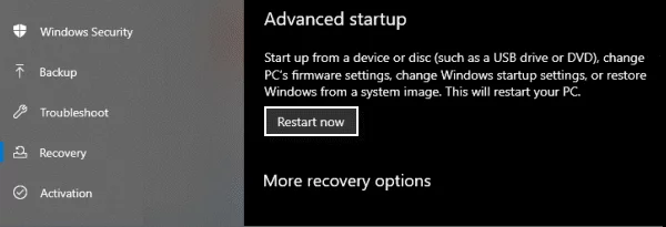 • ستظهر لك قائمة اختر منها اعد التشغيل الان “Restart Now” .