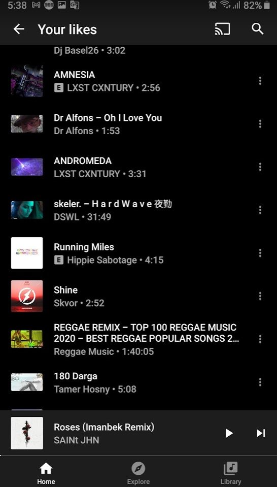 و يوجد ثلاث علامات تبويب و هم الصفحة الرئيسية “Home” و الاستكشاف “Explore” و المكتبة “library” .