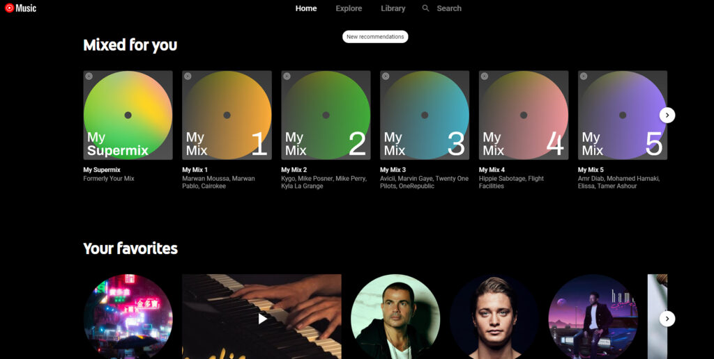 و تكون الصفحه الرئيسيه عبارة عن مزيج من كل شيء سواء الاعجابات او الترشيحات الجديده او ميكسات الاغاني .